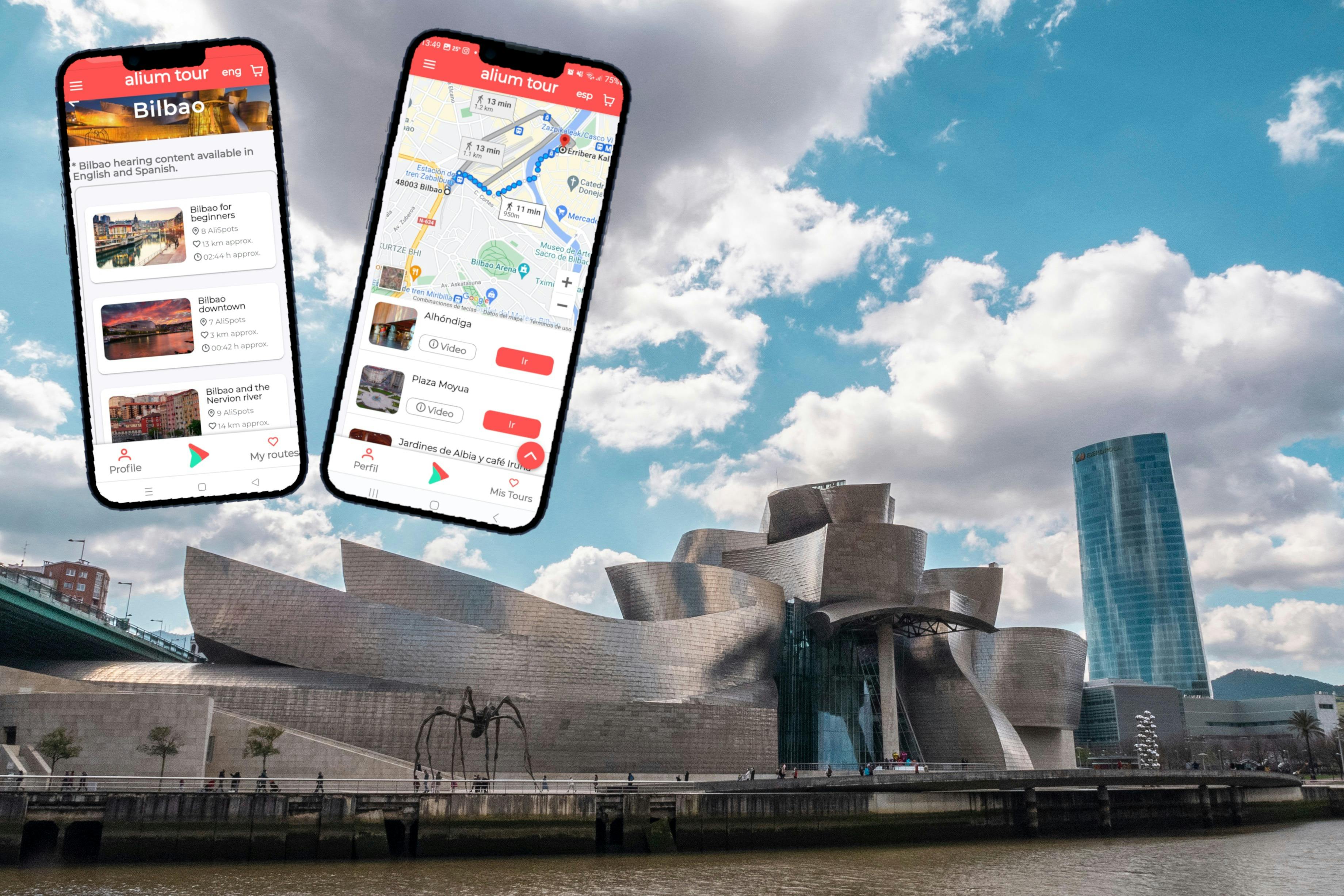 Want to explore Bilbao at your own pace? This is the self-guided walking tour for you! * Forget the pre-established schedules and limitations of traditional tours, and explore the city with total freedom. If you feel like spending more time in one place, just stop and enjoy yourself! * With this innovative digital platform, you will have an immersive and unforgettable Bilbao experience. In addition, thanks to audiovisual content, you can immerse yourself and see how the city evolved from the past to the present day, through its architecture, art and curiosities. * Thanks to integrated GPS, you can travel the most emblematic places of Bilbao without ever losing your way. * Come and be captivated by the magical experience offered by this unique walking tour of Bilbao!