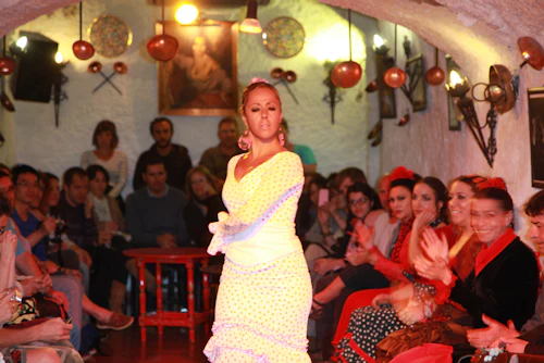 Step into the mesmerizing world of Flamenco in the caves of Sacromonte at Los Tarantos, an unrivaled experience that embodies the soul of this passionate art form. Brace yourself for an unforgettable evening as you witness the fiery magic unfold before your eyes. * With a reputation for excellence, this cave has been a sought-after venue for flamenco shows, drawing renowned artists who have graced its stages with their unrivaled talent. Feel the power of Luis Heredia "El Polaco", Morenito de Íllora, and Chonchi Heredia, whose performances have left audiences in awe. Their spellbinding singing has inspired the likes of Manolillo Liñan, recipient of the prestigious National Prize for Spanish Dance, and the remarkable Luis de Luis. * Immerse yourself in the legacy of flamenco at Los Tarantos, where the past and future intertwine in a mesmerizing dance of passion and artistry. Book your tickets now and prepare to be swept away by the extraordinary talent on display.