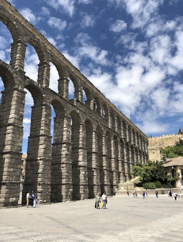 Discover Segovia in full with a tour of its most emblematic monuments: the Aqueduct, Cathedral and Alcazar. * With your Spanish-speaking guide leading the way, walk through narrow streets highlighting the influence of the different cultures that contributed to the prosperity of one of Europe's lesser-known gems throughout the Middle Ages. * Admire the arched Roman Aqueduct in Plaza del Azoguejo, old noble houses, atriums and towers of Romanesque churches, and corners full of legends. Go inside the grand Gothic cathedral, and walk through the Jewish quarter en route to the jewel of the city, the Alcázar of Segovia.