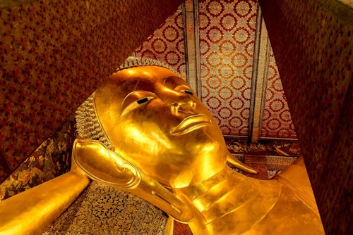 Watch Bangkok’s vibrant nightlife revive after dark and escape the simmering heat of the day to enjoy an exciting evening in Thailand’s capital. * Start your night in Bangkok by admiring the beauty of the Grand Palace and the Temple of the Emerald Buddha. * Your next stop is a guided tour of the interior of Wat Pho, an ancient temple housing over 1,000 Buddha statues – one of which measures more than 46 meters in length! * See the sights along the Chao Phraya River as you board a traditional riverboat and enjoy a peaceful boat ride through Bangkok. * Marvel at the exterior of the bejeweled Wat Arun temple and admire its enormous white domes inlaid with thousands of colorful mosaic pieces. * Cross the river on the traditional boat again and walk to Pak Khlong Talat, Bangkok's most beautiful flower market. Overflowing with garlands, bouquets, potted plants, and fresh fruit, prepare for a colorful sensory experience.