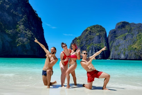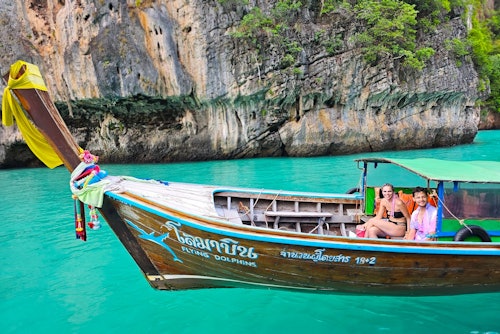 Escape to the tropical paradise of Koh Phi Phi on a day-long adventure that promises sun, sea, and a taste of the exotic. This private tour on a traditional longtail boat sets sail from Khao Lak, with all transfers and hotel pick-ups handled with ease. * At the break of dawn, 05:30 AM, a private taxi will whisk you from your hotel in Khao Lak/Phang Nga. Then, buckle up for a shared speedboat ride at 08:30 AM, propelling you towards the allure of Phi Phi. By 09:30 AM, the island paradise will unfold before your eyes. * At 10:30 AM, the real adventure begins as you embark on a 4-hour private tour aboard a charming longtail boat. Discover the famous Maya Bay, an idyllic beach that's graced the silver screen in blockbusters like "The Beach" starring Leonardo DiCaprio. * Bask in the serene beauty of Pileh Lagoon, a turquoise oasis that invites you to take a refreshing dip. Snorkel in crystal clear waters, visit the curious monkeys at Monkey Bay, and marvel at the mysterious Viking Cave. * The tour wraps up at 02:30 PM, leaving you ample time to explore Phi Phi Don on your own. By 05:00 PM, a shared speedboat will be ready to edge back to Phuket, with a private taxi to return you to your hotel by 06:15 PM. * This Koh Phi Phi day tour is an unmissable slice of paradise waiting to be discovered. Book now and embark on an unforgettable journey!