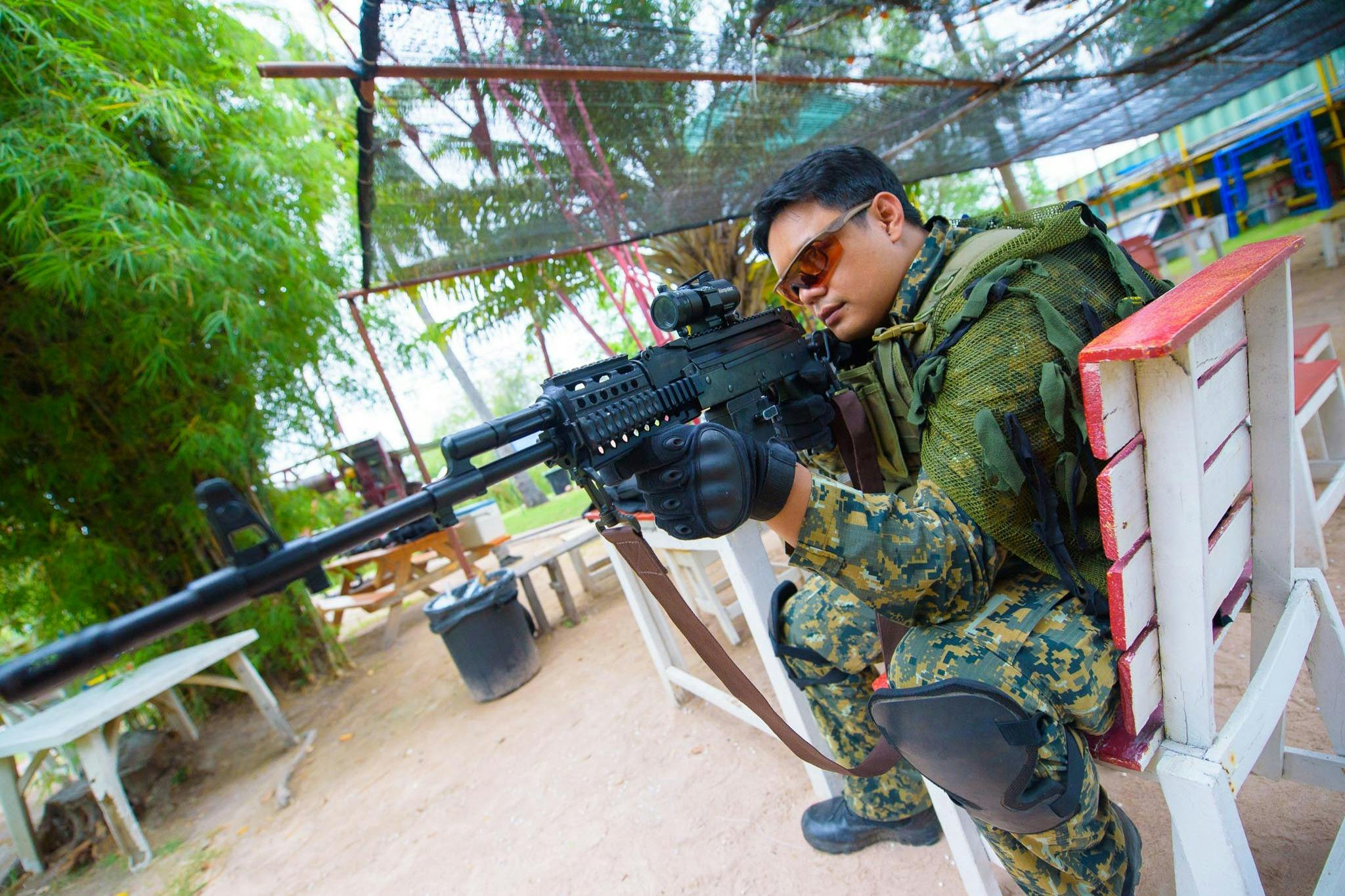 Prepare for an action-packed day at Sanook Park Paintball's Unlimited Airsoft in Pattaya! Join fellow warriors for intense battles on diverse fields, armed with advanced airsoft gear and safety equipment. * Whether you're planning team-building or celebrating a special occasion, get ready for an unforgettable adventure. Suit up and strategize for an epic showdown of skill and agility.
