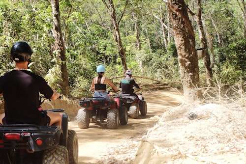 Sashay into the mesmerizing beauty of Phuket’s landscapes with a breathtaking panoramic view. Let the Phuket ATV Tour whisk you away on an adventure through rugged terrains, verdant jungles, and picture-perfect trails. An enticing hour-long ATV ride also ushers you to the majestic Big Buddha Temple, perched atop the Nakkerd Mountain - the crowning glory of Phuket! The fleet of well-maintained ATVs guarantees a safe and thrilling journey, with expert leaders at the helm. Whether a seasoned explorer or a rookie rider, the skilled guides promise an unforgettable voyage, unveiling the diverse and spellbinding scenery Phuket boasts. But oh, the adventure isn’t over yet! Soar high above, feel the wind in your hair, and savor the awe-inspiring views of the surrounding nature on a zipline. Prioritizing safety, yet offering a solid dose of adrenaline, you're guaranteed a memorable time. Come, book your ticket and get ready for a rollercoaster of emotions!