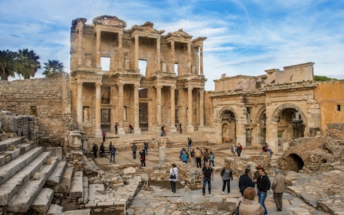 Day tour from Izmir to Ephesus (temples of Hadrian and Domitian, various baths, Bouleuterion / council chambers, Tomb of Pollio, Library of Celsus, Great Theater, House of Virgin Mary, Temple of Artemis, St John's Basilica)