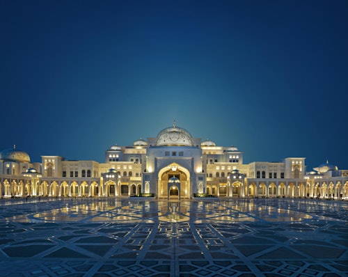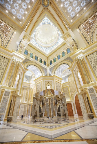 The magnificent facade of Qasr Al Watan lacks the charm of old buildings, but that in no way diminishes the splendor of this palace, which was completed in 2017.
