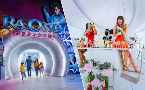 There are 17 rides to choose from, plus a host of spectacular Bollywood shows and experiences. From 4D shows to Ferris wheels, carnivals to roller coasters, it's all here. Take a record-breaking ride with the Bollywood Skyflyer, a hang-gliding adventure 150 meters above the ground. Experience Sholay: The Hunt for Gabbar Singh, an interactive 3D attraction that arms you with laser guns! Experience the best vantage point of a moving cricket ball in Lagaan: The Thrill of Victory, a motion simulator. Take the little ones to Lagaan - Champaner's Cricket Carnival to experience the sights and sounds of an Indian village, with great wheel and a fun carnival inspired by the movie Lagaan.