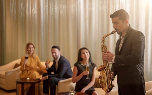 Take to the skies, nibble on tasty canapés, sip a glass of bubbles and enjoy all that is happening around you. Don't forget to toast on the impressive outdoor terrace, 585 meters above sea level, and admire the sun setting over the desert.