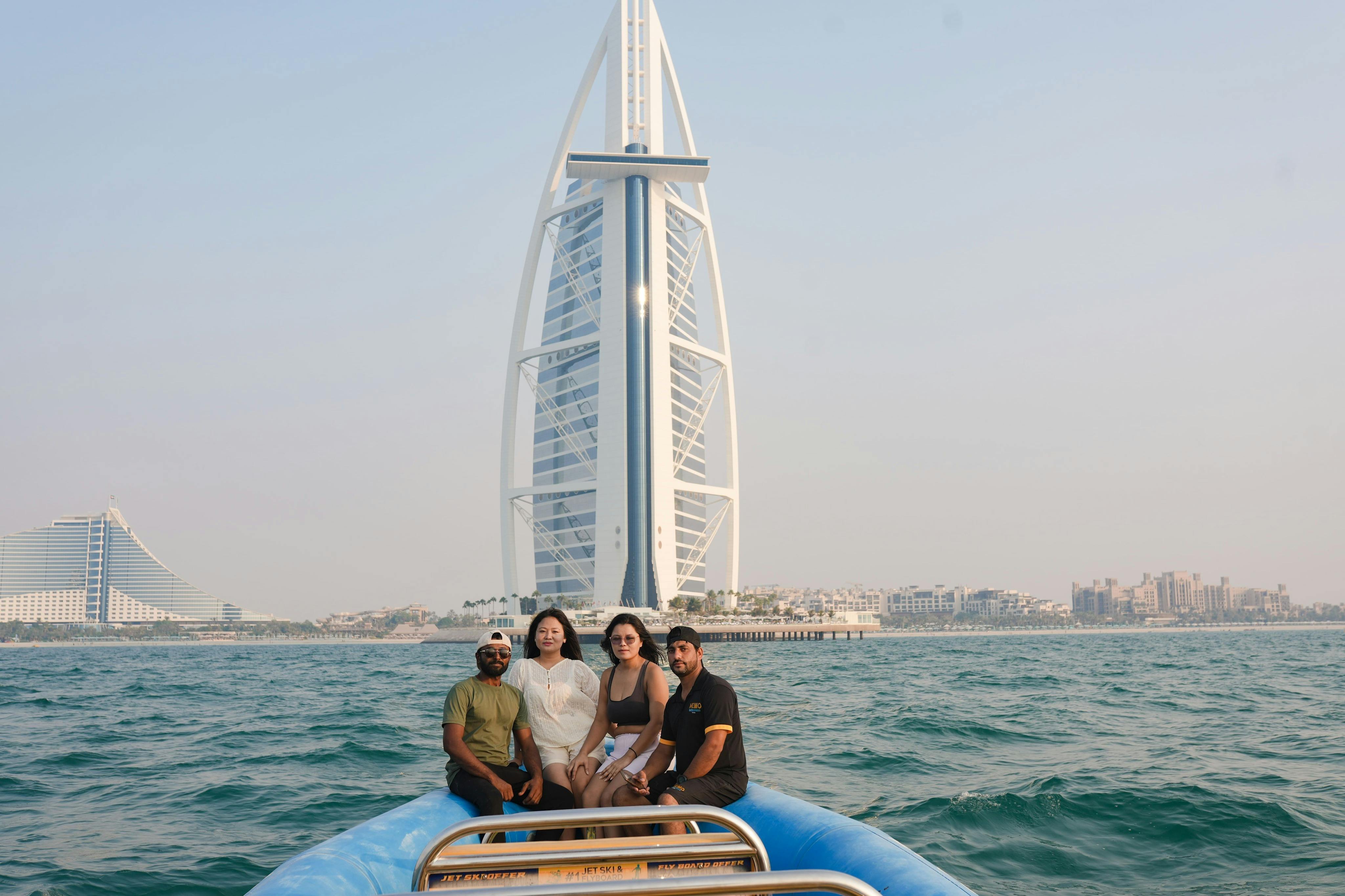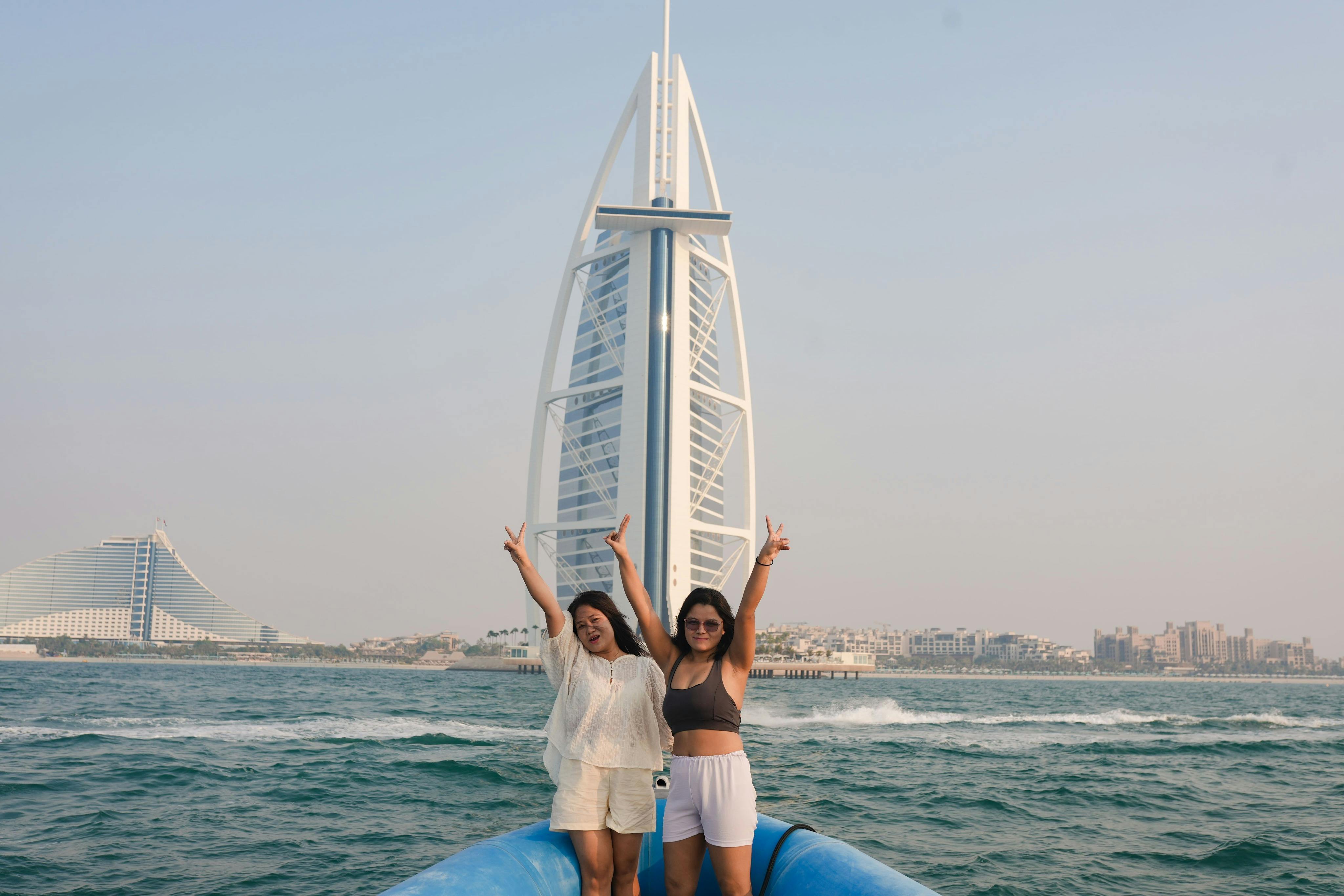 Prepare for a 60-minute boat tour around the Burj Al Arab and Atlantis, promising an exciting ride with fantastic views. Feel the wind in your hair and the thrill of the open seas as you join this unforgettable tour. * Gain a unique perspective of two iconic landmarks from the sparkling waters. It's an exciting voyage that takes you into Dubai's architectural wonder.