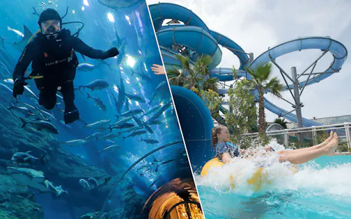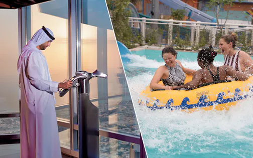 Grab your technicolor swimsuit and dive feet first into Dubai's splashiest attraction. Laguna Waterpark is a tropical oasis of slip-sliding fun, located in the cool ocean breeze of La Mer. Waterslides, a lazy river and waves for surfing... this smartphone ticket will fast-track you to a day of wild aquatic fun in the sun.