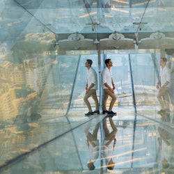 Admission ticket to Sky View Observatory includes a ride on the outer glass slide, which launches visitors from level 53 to level 52 in a transparent glass tube. Will you be brave enough?
