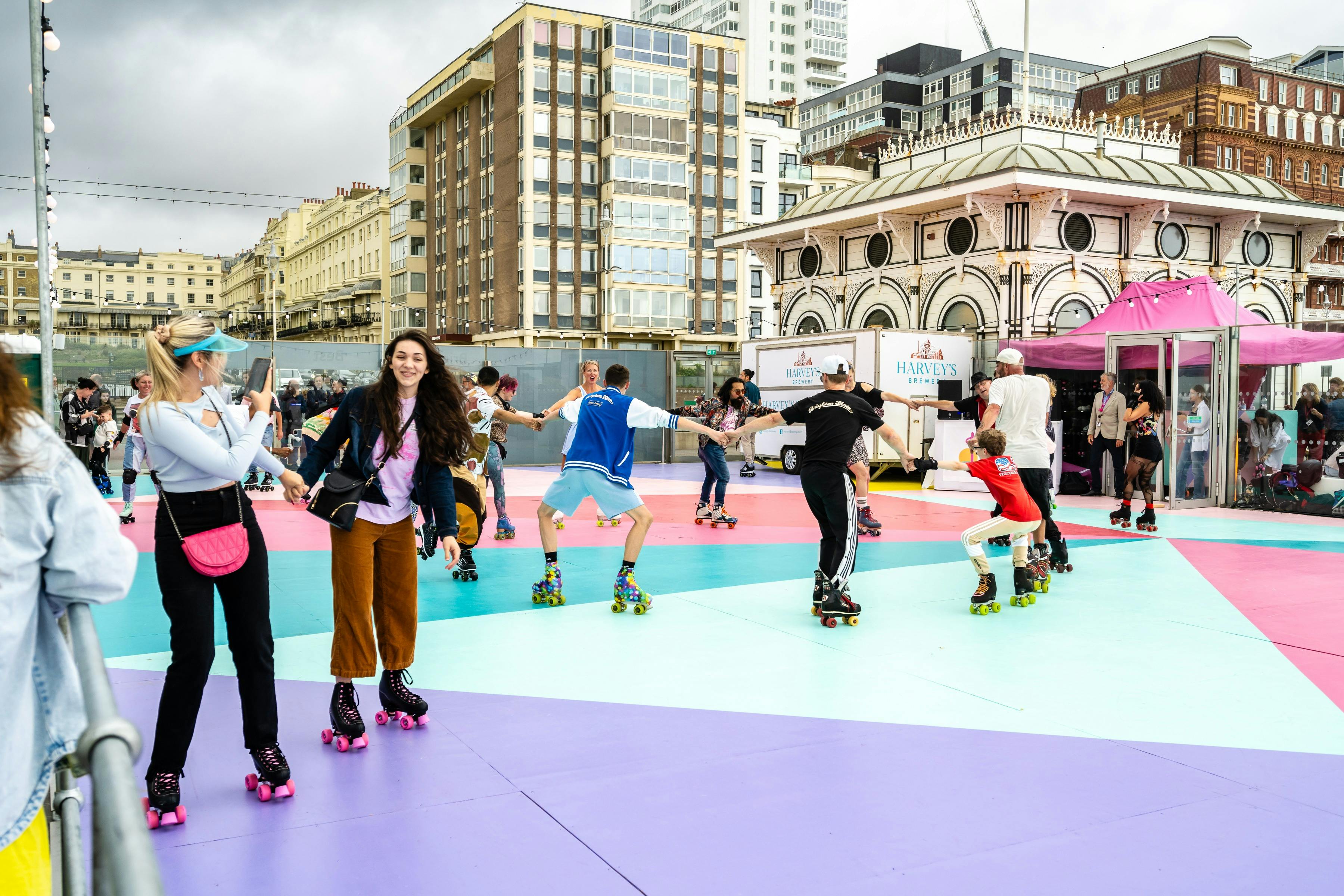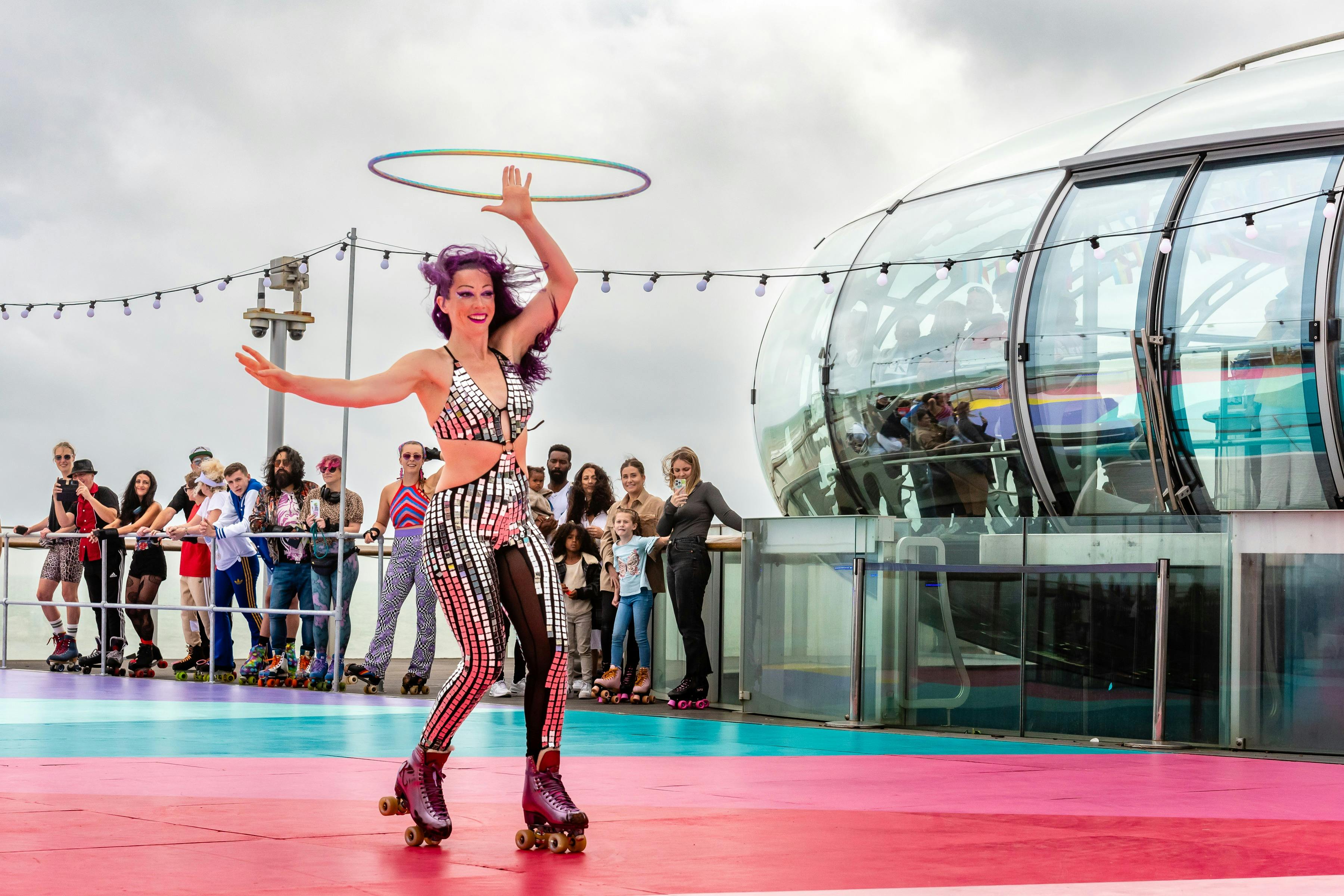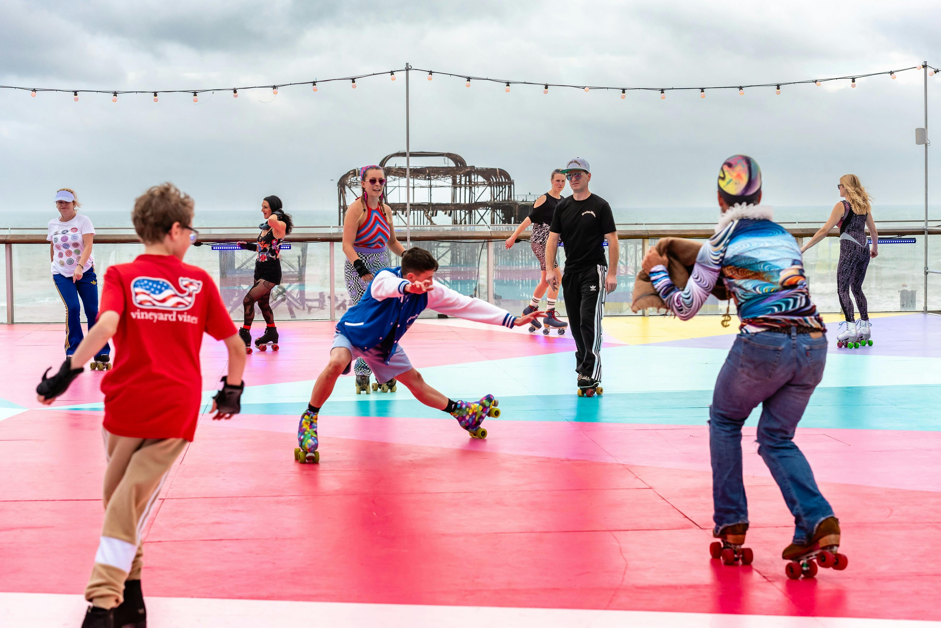 Swoop up to a soaring 450ft aboard the spacious glass viewing pod on Brighton's i360, taking in the kaleidoscopic mural below on the Skate 360 floor. * The breathtaking vistas of the coast, city, and South Downs are truly unforgettable. After this sky-high spectacle, it's time to roll back down to earth and strap on some skates. Glide over to the Skate 360 rink for a 45-minute spin on Brighton's only open-air roller rink, with the beach as your backdrop. * For an extra touch of luxury, why not add a drink from the Sky Bar to your adventure?