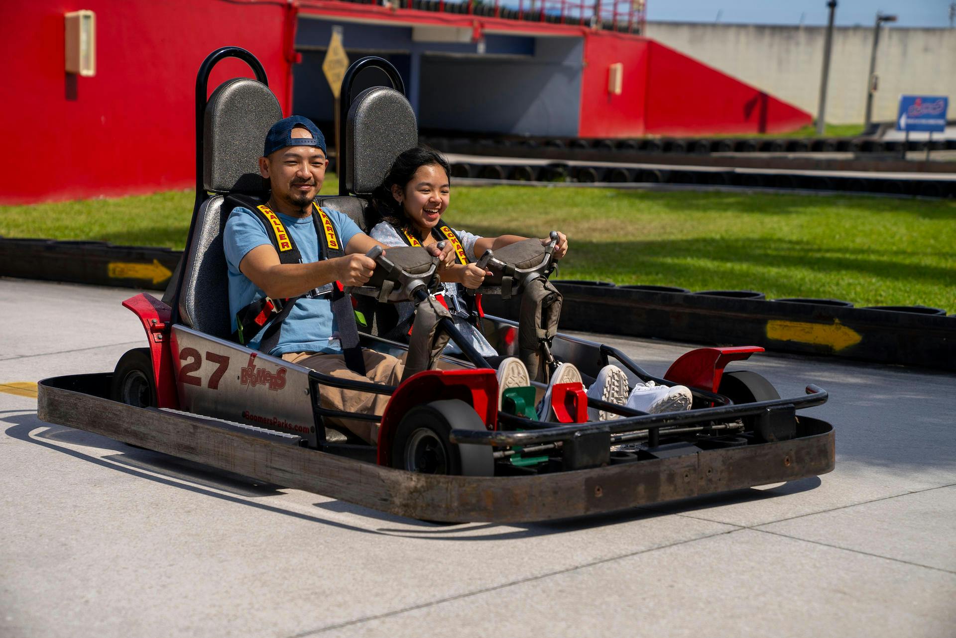 With indoor and outdoor options, along with free parking, it's a high-speed, adrenaline-packed adventure for the whole family at Boomers Boca Raton! Soak up the beautiful Florida sun with outdoor bumper boats, go-karts, two mini-golf courses and plenty of space to enjoy the sunshine - there's fun for all ages here. This ticket gets you unlimited rides on outdoor and indoor attractions! * When you're ready to cool off, just go inside for indoor bumper cars and laser tag! Ask at the admissions desk for upgrades to the arcade, too! If you're thirsty after all that power play, grab a cold drink from the Chill Zone, or power up with a hot dish served up by the kitchen.