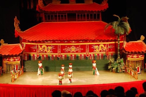 Attend a traditional 45-minute water puppet show featuring Vietnamese art. Water puppetry is deeply rooted in Vietnamese culture, especially in rural areas. * The performance takes place on a water pool stage. Skilled puppeteers use long bamboo rods and strings to control the puppets from beneath the water's surface. A traditional Vietnamese orchestra accompanies the show with its music. * The puppets depict stories from the songs, portraying scenes of everyday life in the Vietnamese countryside.