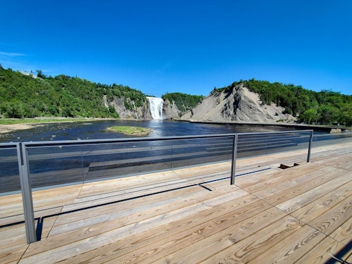 A un paso del Viejo Québec, el Parque de la Chute-Montmorency es un lugar histórico y un espectacular paraje natural combinados. Con este billete obtendrás una fácil entrada al Parque de la Chute-Montmorency y un pintoresco viaje en teleférico hasta la cima de las estruendosas cataratas de Montmorency. Desde allí puedes caminar por el puente colgante y a través de la niebla sobre las cataratas, pasear por los numerosos senderos y, para vivir una auténtica aventura, descender por la escalera panorámica de 487 escalones que abraza la ladera del acantilado.