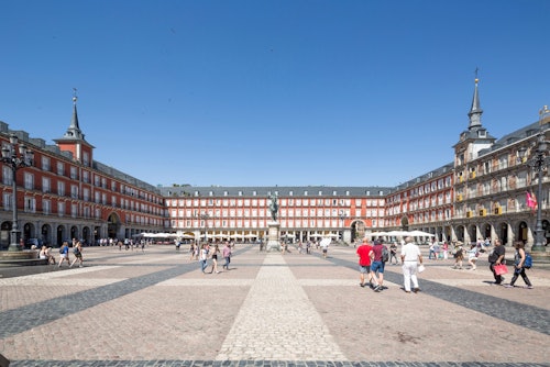 Este recorrido panorámico por la bella ciudad de Madrid es una fiesta para los sentidos, y una aventura imprescindible para los amantes del fútbol. Únete a un recorrido a pie por las calles del centro histórico. A continuación, sube a un autobús con aire acondicionado para dar un paseo por algunos de los lugares de interés más importantes, como la Plaza Mayor, la Puerta de Alcalá, la Plaza de Cibeles, la Puerta del Sol y el Estadio Bernabéu. Detente en algunos de los lugares para hacer fotos. Obtén consejos personalizados de un guía local, y luego ve por tu cuenta en una visita autoguiada a la casa del Real Madrid CF. Esta es tu oportunidad de husmear en el estadio de uno de los clubes más importantes del mundo a tu aire. En el museo, conocerás la historia del club y disfrutarás de vistas panorámicas del estadio.