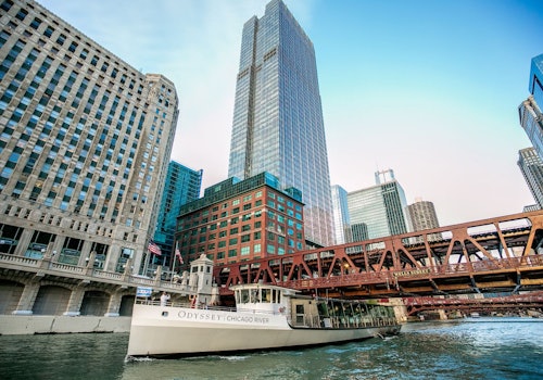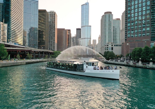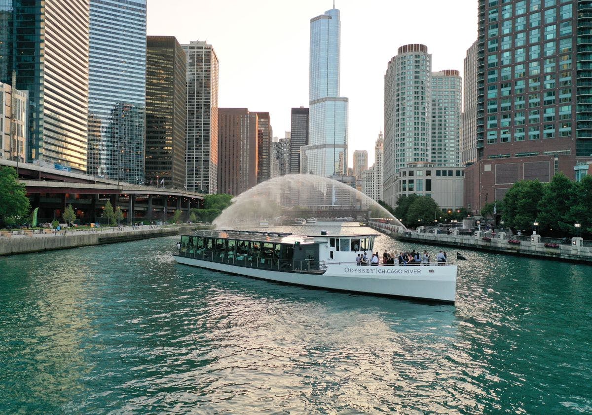 Navega por el río Chicago con estilo durante este crucero con cena de dos horas y media a bordo del Odyssey. Observa la hermosa Ciudad del Viento y su impresionante arquitectura a través de las ventanas panorámicas del barco. A continuación, siéntate para disfrutar de una deliciosa comida de tres platos acompañada de un DJ que te ayudará a crear el ambiente necesario para el viaje. El Odyssey cuenta con un bar de servicio completo, con microcervecerías, cócteles creativos y una amplia carta de vinos.