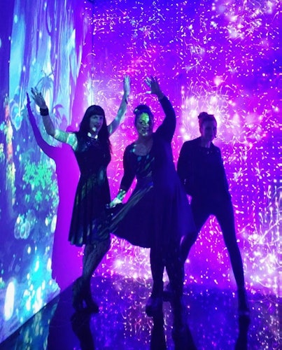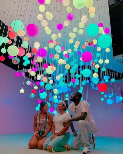 Tan pronto como entres en el museo, te encontrarás en la sala Tesla. Este espacio único está lleno de bombillas de neón que brillan con corrientes eléctricas que rebotan dentro de sus cámaras de vidrio. ¡Actuarás como el conducto, tocando la luz y dejando que la energía de los vasos iluminados gravite hacia tus dedos! Cerca del final de la sala principal, encontrarás la Sala del Bosque. Esta espaciosa exposición está llena de obras de arte que han sido integradas ingeniosamente en la estética de la sala, incluyendo luces de colores, hierba de neón y proyecciones con temas naturales por todas las paredes. ¡Es como estar en una jungla de ciencia ficción!