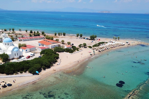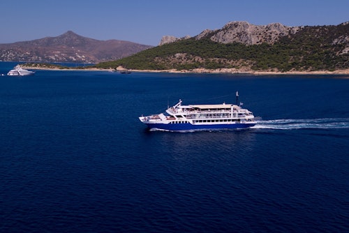 Zarpando en 9:45, este viaje acuático te llevará a las impresionantes playas de Agistri, Metopi y Perdika. Es la oportunidad de oro para descubrir la belleza intacta de Moni y sumergirte en las centelleantes aguas del golfo Sarónico. ¡Pero la magnificencia no acaba ahí! En este crucero, tus papilas gustativas también disfrutarán. Un buffet mediterráneo, rebosante de delicias saludables, se sirve junto a vinos selectos, bebidas frescas y aromático café de filtro. Y justo cuando crees que el día no puede ser mejor, la Riviera ateniense espera tu regreso. La hipnotizadora puesta de sol, perfectamente emparejada con las singulares melodías del DJ en directo a bordo, grabará este viaje en tu memoria para siempre. ¿Listo para subir a bordo?