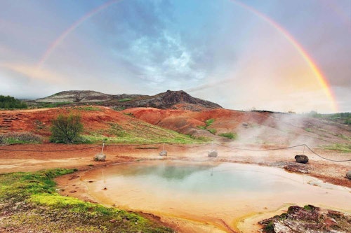 Combina la popular excursión del Círculo Dorado con un relajante viaje a las fenomenales aguas termales naturales de la Laguna Secreta. Esta excursión incluye traslados de ida y vuelta desde Reikiavik y te llevará a los principales lugares de interés del Círculo Dorado. Formarás parte de un grupo reducido, así que no te preocupes por los autobuses abarrotados cuando salgas hacia el Parque Nacional de Thingvellir, la zona de aguas termales de Geysir y la cascada de Gullfoss. Estas tres atracciones icónicas de Islandia no deben perderse. Cada lugar resalta una faceta diferente de la escarpada belleza del país. No sólo mimes tus ojos, mima también tu cuerpo. La excursión te lleva a la Laguna Secreta, donde podrás sumergirte en las aguas únicas y naturales de las termas. Si buscas un día completo de aventura, lo has encontrado.