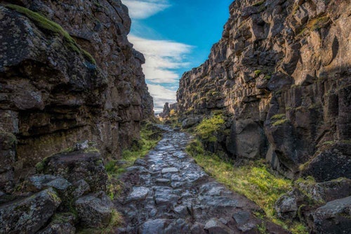 Deja atrás los abarrotados autobuses turísticos y descubre las atracciones naturales más emblemáticas de Islandia en una excursión en grupo reducido por el famoso Círculo Dorado. Como parte de tu aventura, también podrás hacer snorkel en la Fisura de Silfra, en el Parque Nacional de Thingvellir, declarado por la UNESCO. Tras salir de la capital, dirígete al parque nacional y practica el esnórquel en las claras aguas de la Fisura de Silfra, una grieta natural entre las placas tectónicas norteamericana y europea. Tras una experiencia de snorkel increíblemente única, explora el valle geotérmico de Haukadalur en minibús. Te detendrás para ver las famosas aguas termales de Geysir y la cascada de Gulfoss, las dos últimas luces del Círculo de Oro.
