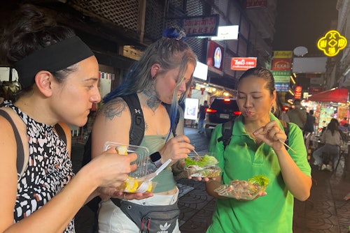 Este breve recorrido a pie por Bangkok te llevará a algunos de los lugares más famosos de la ciudad en sólo dos horas. También puedes elegir entre varias horas de inicio para adaptarte a tu horario. Tras reunirte con tu guía, explorarás el Barrio Chino de Bangkok. Sumérgete en sus calles laterales y observa Bangkok desde una nueva perspectiva mientras sacas fotos de las pequeñas pagodas, pasas por delante de los vendedores de comida que venden platos auténticos que te hacen la boca agua, y echas un vistazo a los quioscos y puestos con muchas baratijas perfectas para el recuerdo. Tras recorrer las calles de Chinatown, acabarás en Wat Mangkon Kamalawat (Wat Leng Noei Yi). Este templo es el mayor y más importante de los templos chinos de la ciudad y fue construido en el estilo arquitectónico chino clásico. Maravíllate con la majestuosa estructura y opta por hacer una ofrenda en el templo.