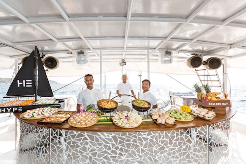 Lejos del bullicio de la isla, este crucero desde Phuket promete ser el punto culminante de tus vacaciones en Tailandia. Siéntate y relájate mientras zarpas hacia un impresionante día en las aguas cristalinas que rodean Phuket. Si decides nadar y hacer snorkel en algunas de las islas -¿y por qué no lo harías? - se te proporcionará todo el equipo de snorkel. El DJ hará sonar los éxitos, desde melodías chill-out de salón hasta música de club, y también hay una gran selección de comida a bordo. Disfruta de una deliciosa comida para picar, desde la tradicional comida tailandesa hasta el sushi y las tapas. ¿Hemos mencionado la selección de bebidas? Elige finos champagnes, licores y cócteles por tu cuenta, o limítate a los refrescos. ¡Se trata de crear tu crucero perfecto!