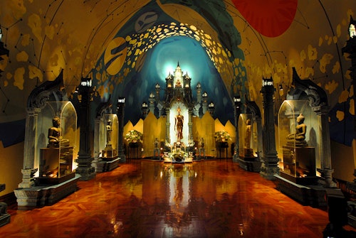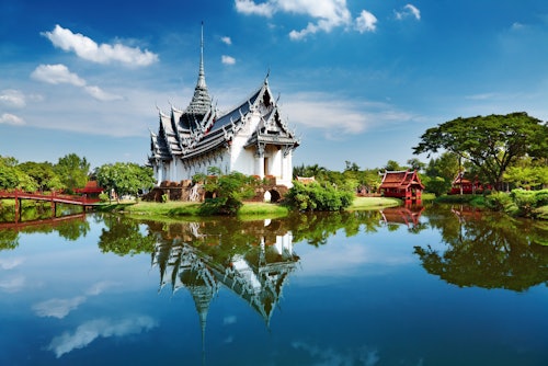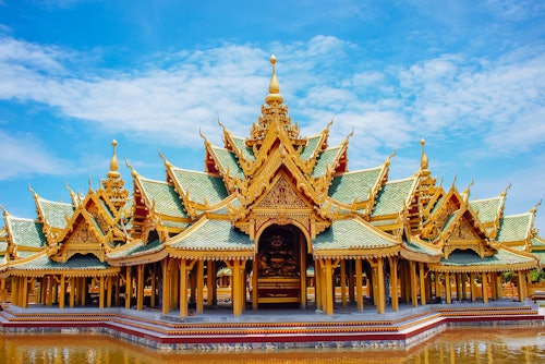 Vea elefantes en las escaleras, pagodas tailandesas y coloridos techos de cristal, y tome una clase de arte y diseño tailandeses.