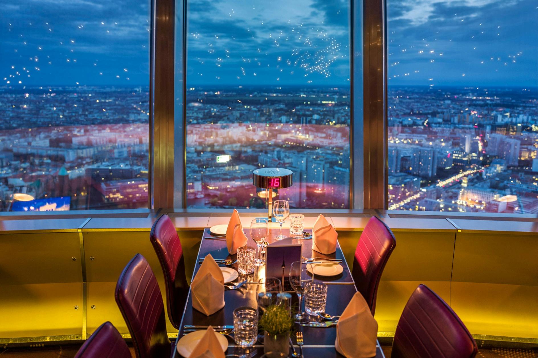 Bénéficiez d'un accès et d'une réservation garantie d'une table dans un restaurant tournant situé à 200 mètres au-dessus de la ville. Ce billet est sans aucun doute le meilleur moyen de voir l'emblématique tour de télévision de Berlin.