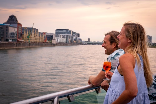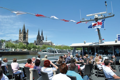 Préparez-vous à une visite de la charmante ville de Cologne, où vous découvrirez les principales attractions au cours d'une croisière sur le magnifique fleuve Rhin. Installez-vous confortablement et détendez-vous en dégustant des boissons rafraîchissantes au bar du bord. Au cours de la visite, vous découvrirez la vieille ville historique de Cologne et ses nombreuses merveilles architecturales anciennes. Ne perdez pas de vue les monuments modernes tels que le musée du chocolat Lindt ! Admirez le pont Hohenzollern, le pont suspendu Deutz et le pont Sud. Admirez le Musée olympique et sportif allemand et le quartier animé de Rheinauhafen. Et n'oubliez pas le clou de la visite : prenez une photo de l'époustouflante cathédrale de Cologne, vue de loin. Sa splendeur architecturale est encore aujourd'hui éblouissante !