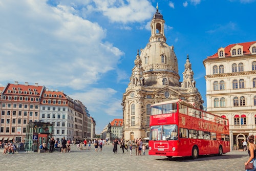 Profitez d'une visite guidée en bus des points forts de la culture et des monuments de Dresde pour vivre une expérience inoubliable dans cette ville historique. La visite commence dans le centre-ville, passe devant l'étonnante Frauenkirche et traverse les rues pavées de la vieille ville. Un guide expert vous fera part de ses commentaires colorés pendant que le bus passe devant le Semperoper, le palais Zwinger, le palais royal, le château de Dresde, le magnifique quartier baroque et l'emblématique Cavalier d'or. Après le tour de ville, profitez d'une visite guidée au Semperoper, l'un des plus magnifiques opéras du monde, connu pour la qualité de classe mondiale de ses représentations. Vous vous arrêterez également à la laiterie Pfunds, pour visiter l'une des plus belles laiteries du monde.
