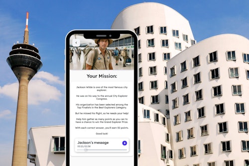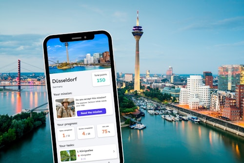 Préparez-vous à un jeu passionnant d'exploration de la ville qui allie plaisir, apprentissage et visites touristiques, parfait pour tous les âges. Aidez Jackson Wilde, un célèbre explorateur de la ville, en résolvant des quiz et en gagnant des points au fur et à mesure que vous visitez certains des principaux sites de Düsseldorf. Téléchargez l'application sur Android ou iOS, ou accédez-y via un navigateur pour commencer votre aventure. Explorez Düsseldorf, remplissez des missions et apprenez-en plus sur les monuments de la ville.