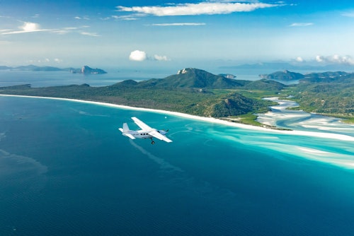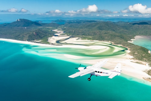 Survolez la Grande Barrière de Corail lors de cette visite aérienne d'une heure des îles Whitsunday. Votre pilote vous enverra les commentaires et la Terre mère vous offrira des vues inoubliables. Il vous suffit de profiter de la balade et de profiter de la beauté de cette partie du monde. Au cours de votre vol panoramique de 60 minutes, vous passerez au-dessus des longues étendues de sable blanc de Whitehaven Beach, admirerez les eaux irisées de la mer de Corail et admirerez certaines des 74 îles Whitsunday.