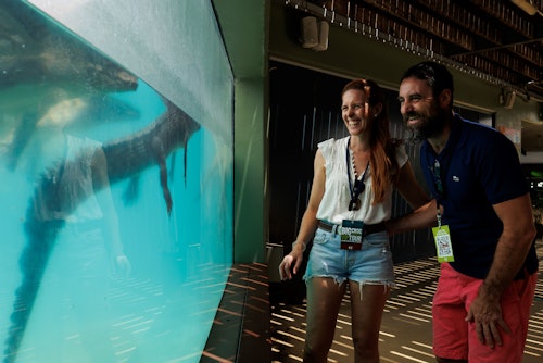 L'expérience VIP "Big Croc Feed" de Crocosaurus Cove offre un regard unique sur les coulisses de ce pays des merveilles reptiliennes, donnant aux visiteurs un aperçu approfondi des reptiles et de la façon dont ils sont soignés. Rencontrez des soigneurs expérimentés au début de votre visite d'une heure et demie et suivez-les dans le parc. Ils partageront les histoires des animaux et superviseront vos rencontres avec les nombreux reptiles uniques. Lors de votre premier arrêt, vous apprendrez à nourrir un crocodile de 5 mètres et serez témoin de la puissance de ses mâchoires qui broient les os ! Ensuite, nourrissez les jeunes crocodiles fougueux depuis la plate-forme Fishing for Crocs, puis passez un moment en tête-à-tête avec le bébé crocodile Fluffy. Terminez la visite par une promenade intime dans la maison des reptiles, et interagissez en toute sécurité avec les serpents rampants et les lézards à l'œil perlé. Cette visite fantastique est proposée tous les jours sur 10h00 et 13h00. C'est l'expérience ultime pour tout amateur de reptiles. Toutes les possibilités de manipulation des animaux sont facultatives et supervisées par des experts professionnels.
