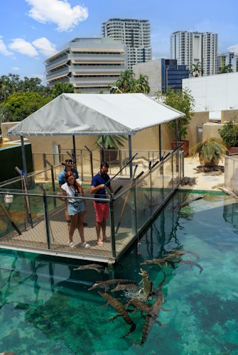Vous n'avez pas à risquer votre vie pour vous rapprocher des crocodiles. Protégez vos membres avec cette aventure à Crocosaurus Cove ! Au cœur de Darwin, découvrez plus de 200 crocodiles d'eau salée australiens, avec de nombreux spectacles et activités inclus dans votre billet. Ce n'est pas seulement l'intrigue des crocodiliens qui rend Crocosaurus Cove si excitante. Pendant que vous y êtes, assurez-vous de voir des barramundis, des poissons archer et des whiprays dans leur aquarium géant, et rencontrez des tortues extra-mignonnes au Top End Turtle Billabong !