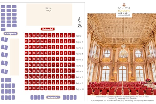 Des boissons, des chocolats et des CD de Mozart peuvent être achetés pendant l'entracte.