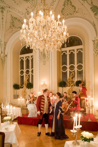 Passez une soirée pleine de musique enchanteresse, de décor luxueux et de plats délicieux dans le cadre d'une série de concerts spéciaux en l'honneur du plus grand compositeur autrichien. Savourez la musique de Mozart avec un ensemble instrumental et deux chanteurs d'opéra portant d'authentiques costumes de l'époque baroque. Vous entendrez les arias et les duos les plus célèbres de Mozart, notamment La Flûte enchantée, Don Giovanni et Figaro. Pendant l'entracte, savourez un délicieux dîner inspiré des recettes historiques de l'époque de Mozart, dans l'ambiance éclairée aux chandelles du Stiftskulinarium de la salle baroque St. Peter, le plus ancien restaurant d'Europe centrale.