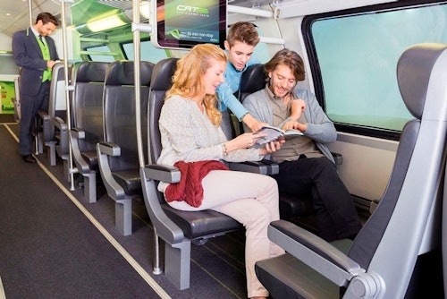 Réservez votre billet de train rapide de la gare Mitte de Vienne à l'aéroport de Vienne avant de partir, et économisez du temps et de l'argent à votre arrivée ! Montez dans le train CAT de la gare Mitte (centre de Vienne) à l'aéroport de Vienne en seulement 16 minutes. Détendez-vous dans les sièges confortables des wagons à deux étages et regardez les photos de votre séjour à Vienne ! Vous pouvez également profiter d'un programme divertissant sur les écrans d'information. La courte durée de votre transfert passera en un clin d'œil. Remarque : il s'agit d'un voyage simple, pas d'un aller-retour.