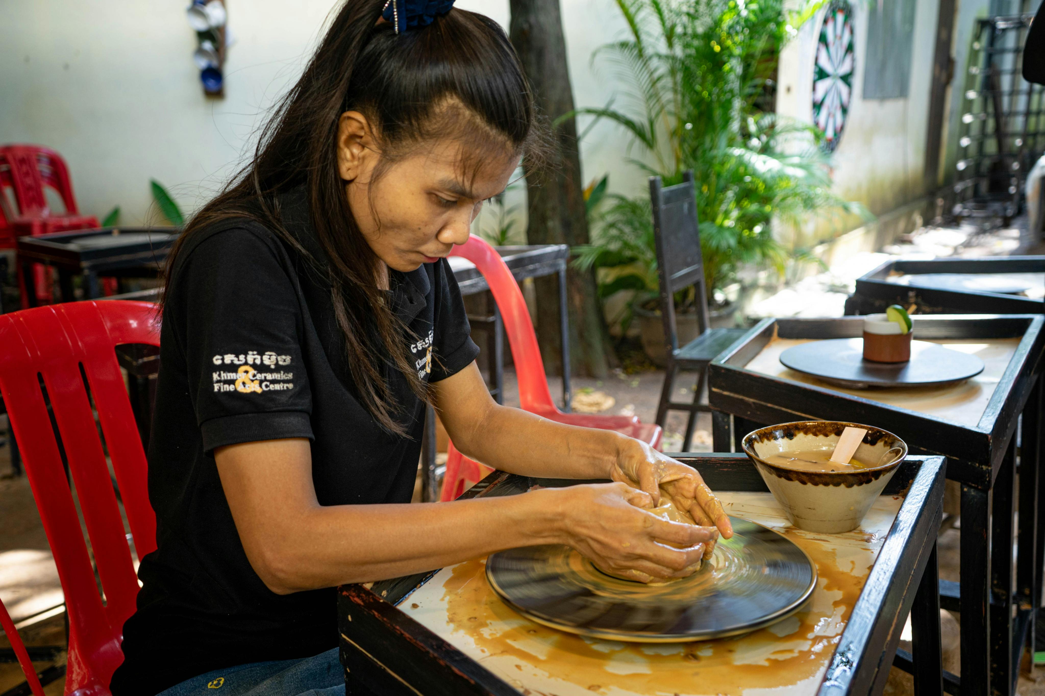 Quittez votre hôtel et rendez-vous dans un magasin de vélos animé. Un guide sympathique vous fournira le vélo idéal pour explorer les charmantes rues de Siem Reap. La première étape est une expérience authentique de Siem Reap. Essayez-vous à la poterie et à la sculpture khmère, en créant de magnifiques céramiques cambodgiennes sous la houlette d'un artiste local. Ensuite, visite du mémorial du Champ d'extermination de Wat Thmey pour un moment solennel de réflexion sur l'histoire du Cambodge de 1975 à 1979 sous le régime des Khmers rouges. Le guide vous donnera des informations sur cette période sombre.
