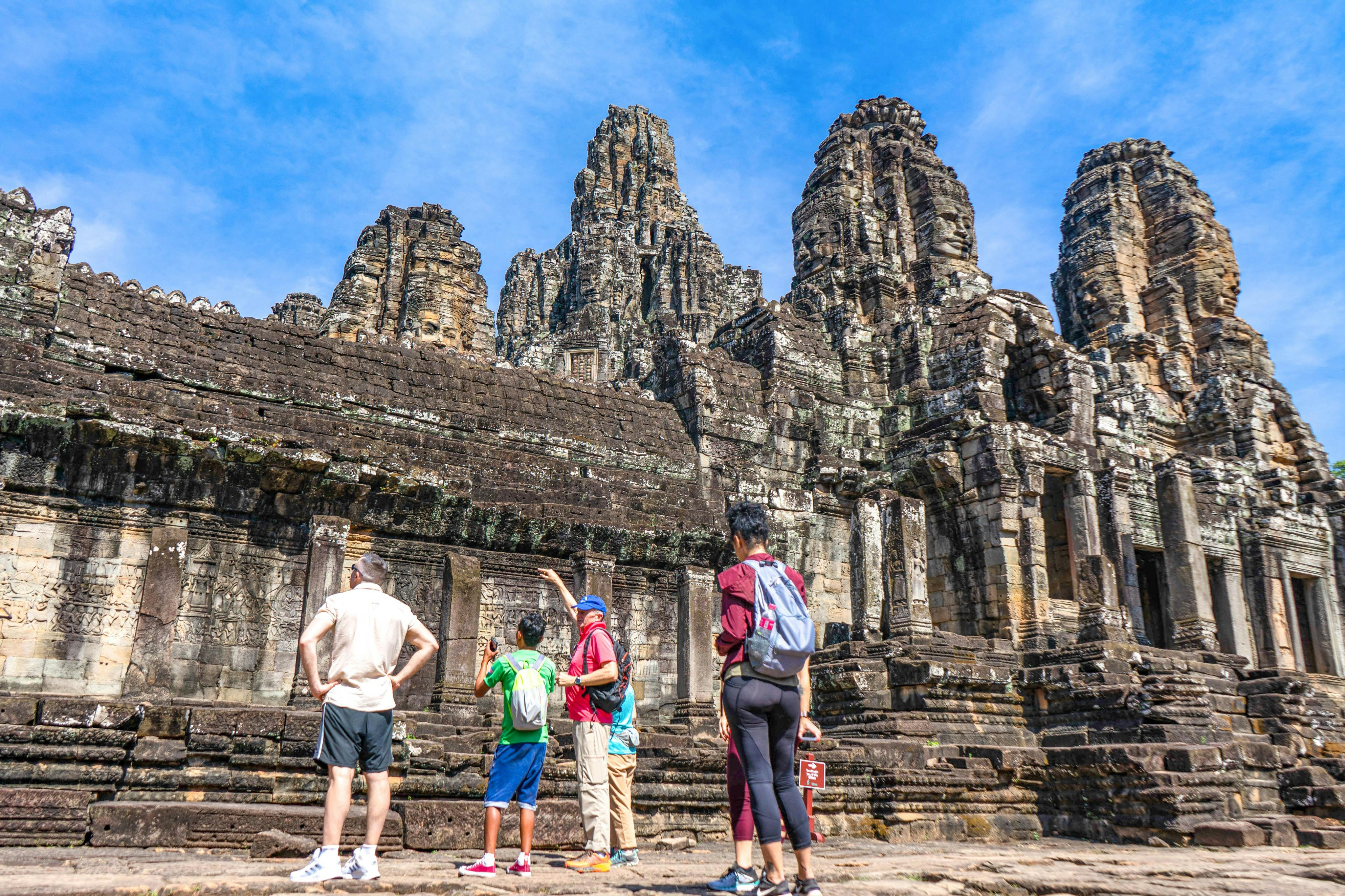 Découvrez le parc archéologique d'Angkor sous un angle différent avec cette aventure à vélo d'une journée. En petit groupe, vous pédalerez sur des chemins de terre et visiterez Angkor Wat, Angkor Thom, Bayon et Ta Prohm, avec un guide anglophone. Admirez la majesté de ce site classé au patrimoine mondial de l'UNESCO et découvrez des temples cachés, une riche histoire, une vue pittoresque sur la campagne et une délicieuse cuisine cambodgienne au déjeuner. Cette visite a tout pour plaire : histoire, culture, nature, gastronomie et, bien sûr, plein de photos !
