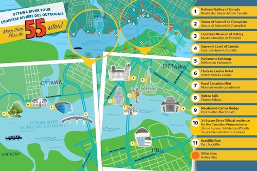 En tant que meilleur moyen de découvrir la région de la capitale nationale du Canada depuis 1936, votre billet pour cette croisière en bateau sur la rivière des Outaouais vous fera découvrir Ottowa comme jamais auparavant. Montez à bord, prenez une boisson ou une collation au bar du pont inférieur, et profitez de cette croisière en bateau en plein air pendant que l'équipage vous emmène voir les sites les plus célèbres de la ville : la statue du célèbre explorateur Samuel de Champlain, les bâtiments de la Cour suprême et du Parlement, la Monnaie royale canadienne, et même une vue rapprochée des fantastiques chutes Rideau. Entre deux visites, profitez du magnifique paysage le long de la paisible rivière Ottowa. Admirez le littoral verdoyant et le ciel dégagé qui ont captivé l'imagination de certains des premiers explorateurs européens. Découvrez l'histoire de la rivière en tant que système de transport vital qui a contribué à façonner la métropole moderne d'Ottowa d'aujourd'hui.
