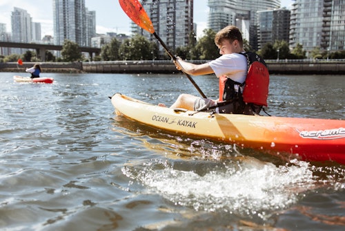 Lorsque le soleil brille à Vancouver, il faut en profiter au maximum. Il n'y a pas de meilleure façon d'en profiter que d'aller sur l'eau à False Creek et de voir la ville sous un tout autre jour. Une fois que vous aurez quitté la terre ferme, vous aurez l'occasion de vous détendre, de pagayer de site en site, de voir la sphère de Science World et BC Place, et peut-être d'apercevoir un phoque ou deux en chemin. Le personnel vous donnera quelques conseils et s'assurera que vous êtes confiant et prêt avant de partir !