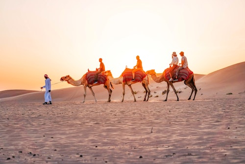 Préparez-vous à vivre une expérience unique avec le Safari matinal dans le désert proposé par Emirates Tours et Safari à Abu Dhabi. L'aventure commence par une prise en charge à l'hôtel, avec présentation d'un guide et d'un chauffeur chevronnés prêts à diriger ce voyage sauvage. Préparez-vous à une séance de dune bashing en 4x4 qui vous fera battre le cœur, à travers les hauts et les bas des montagnes russes du désert. Ensuite, l'élevage traditionnel de chameaux vous attend, vous permettant de rencontrer de près ces nobles créatures, parfaites pour prendre des clichés face au panorama époustouflant du désert. Dans le paisible camp de style bédouin, étanchez votre soif avec de l'eau gratuite et embarquez pour une courte promenade à dos de chameau pour une expérience authentique du désert. Pour les amateurs d'adrénaline, essayez le sandboarding sur les collines sablonneuses pour une poussée d'excitation. Cette matinée exaltante se termine par un retour à l'hôtel, garantissant une matinée remarquable gravée dans les sables du désert d'Abu Dhabi.