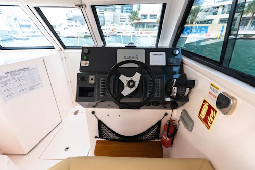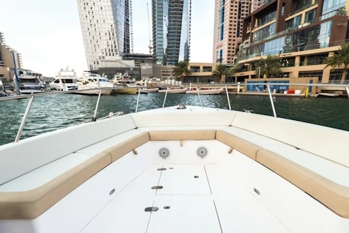 Prêt à impressionner à Dubaï ? Le Silver Craft 36 FT cruiser combine puissance et performance avec un style exceptionnel. Sentez-vous comme un VIP lors de votre croisière dans le port de Dubaï, ou là où le vent vous porte avec vos amis ou votre famille. Avec un capitaine et un membre d'équipage, vous serez entre de bonnes mains. Vous pouvez même apporter votre propre nourriture et vos boissons, et écouter votre propre musique grâce à la connexion bluetooth à bord. 1 heure comprend une croisière dans Marina et aussi JBR. 2 heures comprend une croisière à Marina, JBR et aussi Atlantis the Palm. 3 heures incluent une croisière à Marina JBR, Atlantis the Palm et Burj Al Arab. L'impressionnant "Thunder" est un sacré navire ! Il dispose de beaucoup d'espace pour accueillir jusqu'à 10 invités ou pour aller pêcher en haute mer. Ce bateau emblématique est élégant, moderne et stylé, et vous protégera du soleil ou de la pluie. Faites de cette journée un souvenir inoubliable grâce à une location qui ne ressemble à aucune autre !
