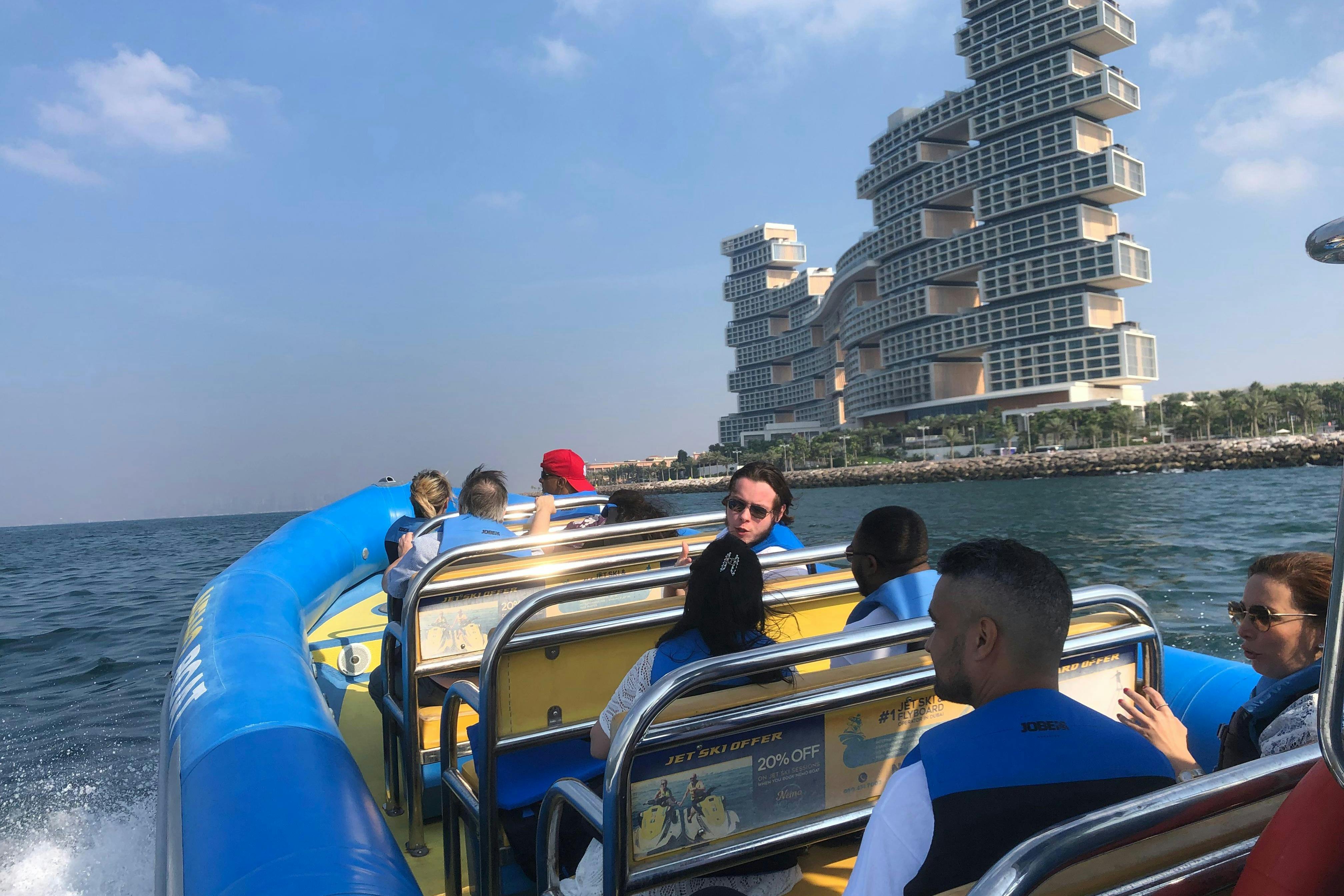 Préparez-vous à un voyage de 45 minutes à travers le paysage urbain de Dubaï ! Commencez votre excursion par le Burj Al Arab, qui se distingue dans le paysage de Dubaï. Au coucher du soleil, le Burj Khalifa offre un cadre parfait pour vos photos lors de cette excursion en bateau rapide à Dubaï.