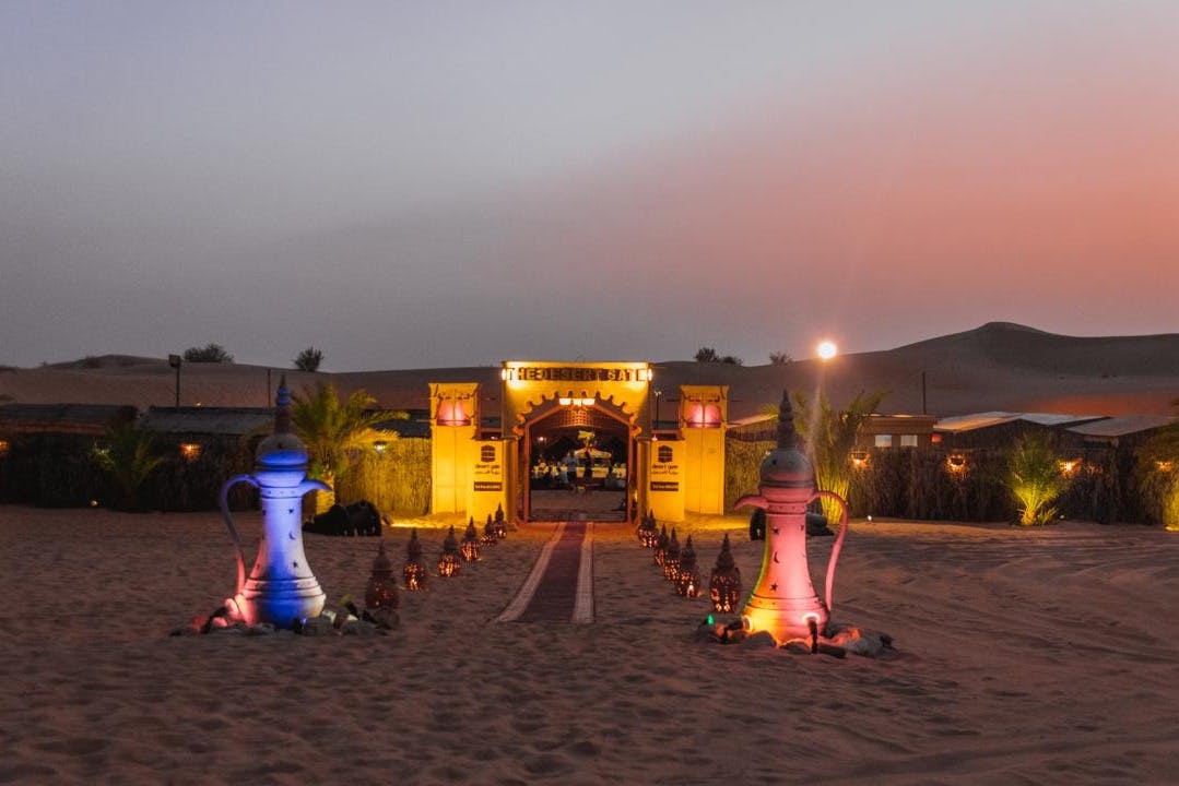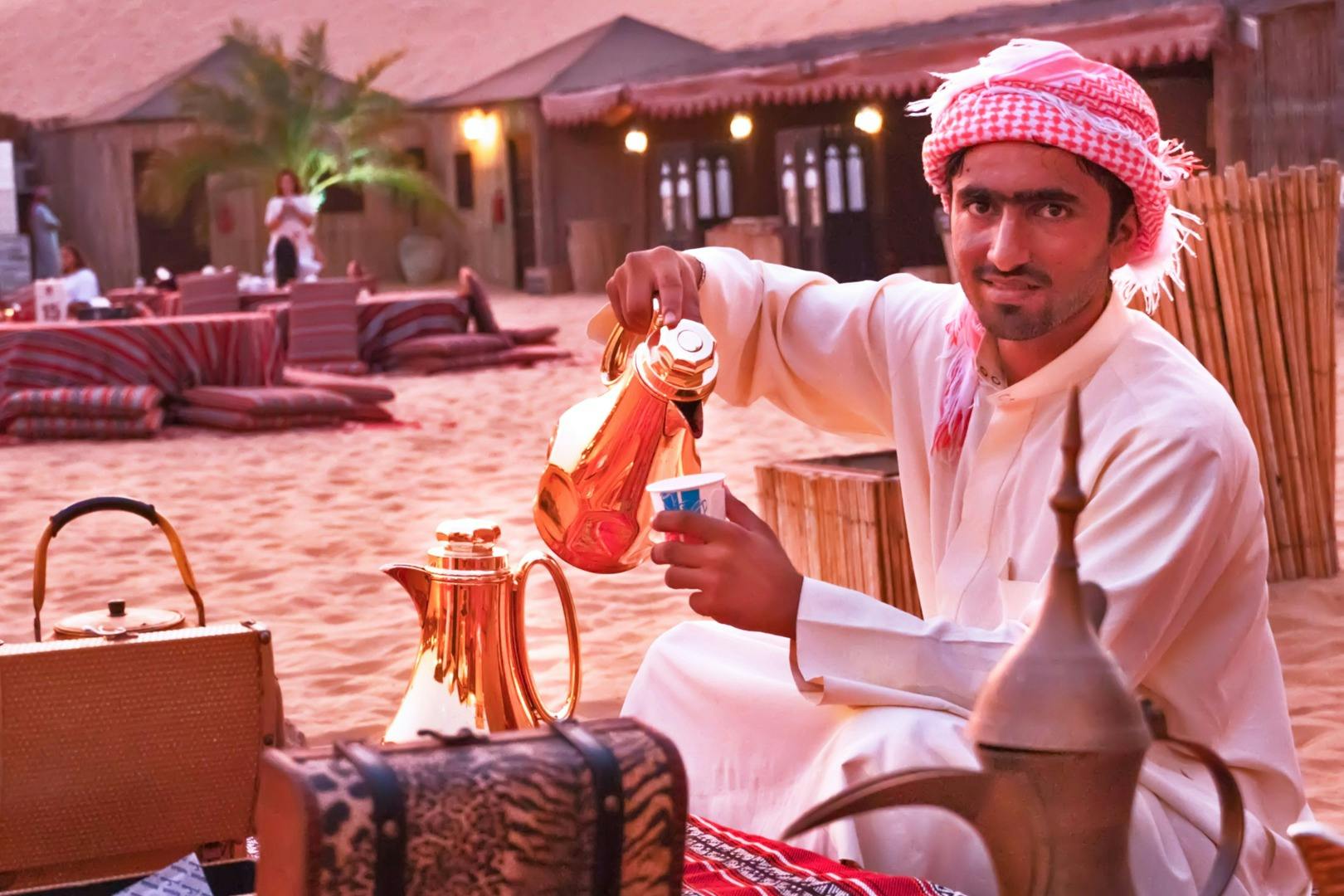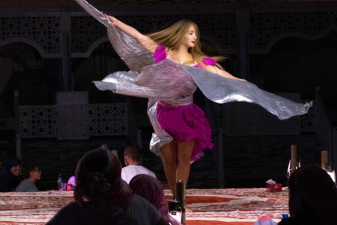 Après une heure de randonnée dans les dunes à bord d'un 4x4 surpuissant, c'est la façon idéale de terminer votre journée. Préparez-vous à un dîner et un divertissement magiques et mémorables dans un camp traditionnel de style bédouin dans le désert. Vous serez pris en charge au siège de l'agence de voyage et conduit vers un authentique festin arabe sous les étoiles. Votre dîner buffet de style bédouin comprend une sélection moyen-orientale de viandes grillées, de salades fraîches, de délicieuses sucreries et de boissons. Retour en transfert à votre hébergement à Dubaï par 9h30 pm.