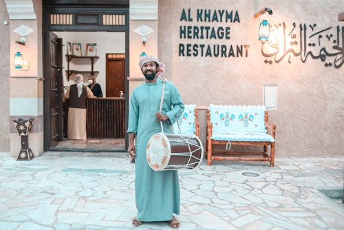 Savourez un délicieux déjeuner ou dîner tout en appréciant l'architecture ancienne et la transition moderne de la maison traditionnelle émiratie Khayma Heritage House. La visite consiste à profiter de l'intérieur de la maison, à goûter à la délicieuse cuisine émiratie et à prendre de superbes photos sur place avant ou après le repas. C'est l'occasion idéale de prendre de superbes photos de l'ancienne maison émiratie, Al Khayma, de ses objets et de la tente, Areesh, tout en s'imprégnant de l'ambiance traditionnelle émiratie. Ne manquez pas cette délicieuse expérience culinaire imprégnée d'histoire régionale.