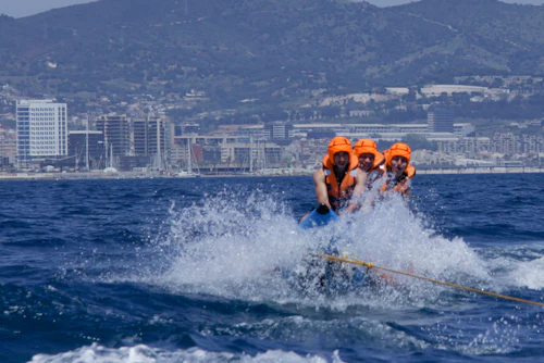 15 minutes en bateau banane (capacité de 8 personnes) *Assurance, gilet de sauvetage et combinaison en option *Vue imprenable sur le front de mer et la skyline de Barcelone
