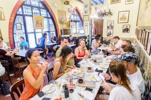 Pédalez sur un vélo électrique et explorez les ruelles des quartiers gothique et du Born pour suivre les traces de Picasso. Passez devant l'exotique parc de la Ciutadella du XIXe siècle et allez directement à la plage de la Barceloneta. Prenez une piste cyclable pittoresque sous les palmiers à côté de la plage, et traversez le Vieux Port pour revenir à la Vieille Ville. Tout en roulant, vous apprendrez à connaître la Barcelone moderne et tous ses changements impressionnants, mais aussi à découvrir la ville que Picasso connaissait. La visite se terminera au bistrot Art nouveau Els 4 gats, où Picasso avait l'habitude de se réunir avec ses amis bohèmes. Dégustez une sélection de vins espagnols associés à une variété de délicieux tapas.