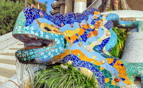 Vous voulez voir le parc le plus flamboyant et le plus célèbre de Barcelone ? Mettez la main sur ces billets Park Güell et explorez la zone monumentale du Park Güell à votre guise grâce à l'audioguide inclus. Ce parc coloré perché sur les collines a été nommé en l'honneur du comte Eusebi Güell - et devait à l'origine être une communauté fermée pour les nantis de la ville. Il a été ouvert à tous lorsque Gaudí est décédé en 1926, et c'est alors que l'architecte lui-même l'a habité pendant les 20 dernières années. La fantaisie est encore plus grande à l'intérieur de la zone monumentale du Park Güell. Des murs, des routes et des allées construits par l'homme imitent les formes naturelles. Des bâtiments exubérants, des carrelages colorés et l'étonnante rampe serpentine vous invitent à prendre une photo. Et les vues de Barcelone d'en haut sont incomparables ! Les billets pour le Park Güell vous plongeront dans l'imagination unique de Gaudí, et ils ne manqueront pas d'inspirer la vôtre.
