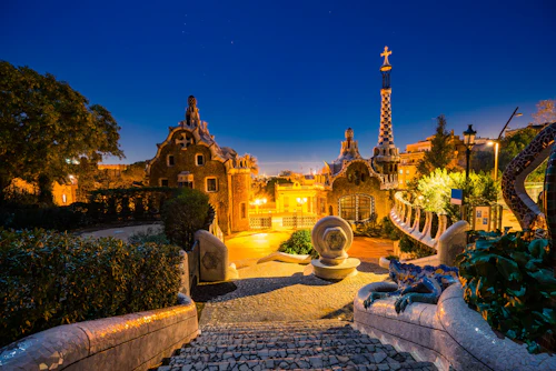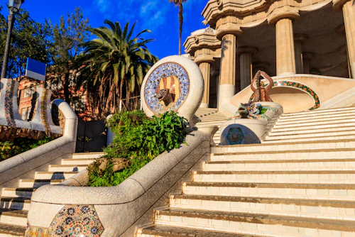 Explorez l'imagination d'Antoni Gaudí grâce à une visite guidée du parc Güell à Barcelone, en Espagne. Conçu par le célèbre architecte Antoni Gaudí, ce parc illustre son style moderniste unique. Découvrez l'histoire et les origines de ce projet urbain et son décor moderniste. Admirez la technique complexe de la mosaïque "trencadís" et admirez les vues panoramiques de Barcelone depuis le sommet de la colline. Avec des guides compétents, découvrez l'histoire et le symbolisme de chaque élément du parc. La visite offre des vues magnifiques de la ville et de ses environs. C'est un mélange d'art, de culture et de nature à ne pas manquer pour tous ceux qui visitent Barcelone.
